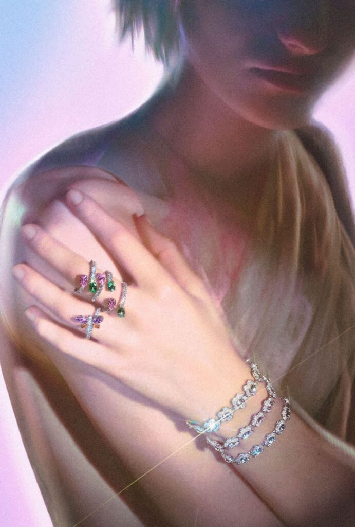 Las 29 piezas que la componen funcionan como pequeñas esculturas emocionales. Cada una propone una forma distinta de expresión (desde lo delicado hasta lo más lúdico) manteniendo siempre el ADN brillante de la maison.