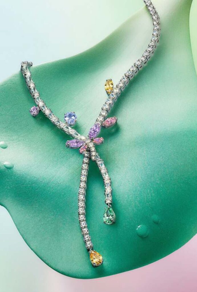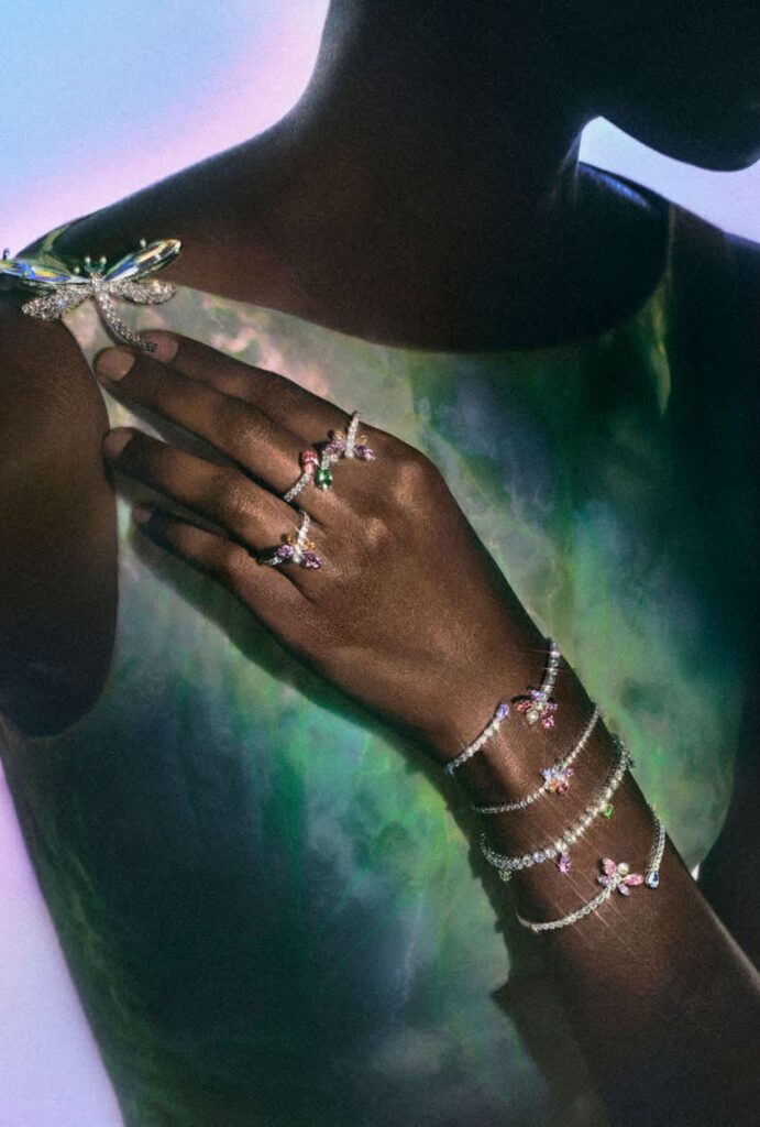 Libélulas, flores y mariposas no son solo inspiración, son protagonistas. La colección juega con interpretaciones tanto literales como abstractas de estos elementos, transformándolos en piezas que parecen cobrar vida.