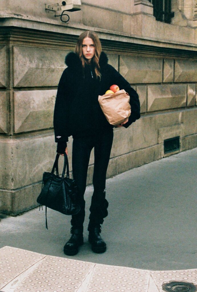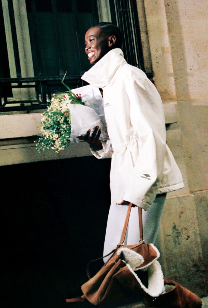 Lejos del cliché de montaña, el esquí según Balenciaga no pertenece solo a las pistas, también se desliza entre luces frías, escaparates empañados y calles heladas.