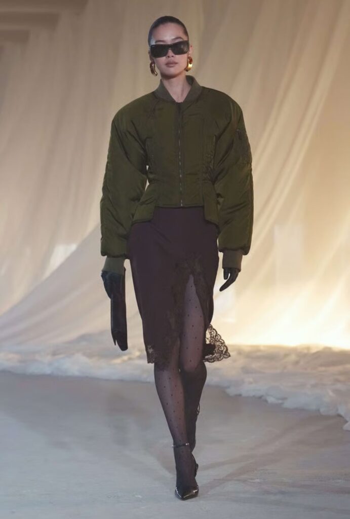 La sastrería de Balmain siempre ha sido un manifiesto de autoridad, y este año no es la excepción. Los trajes presentan hombreras dramáticas y cinturas ceñidas que esculpen la silueta femenina con precisión arquitectónica. Los tejidos de alta densidad y el corte impecable muestran que la elegancia clásica puede convivir con un espíritu vanguardista, convirtiendo cada traje en un símbolo de poder y estilo.