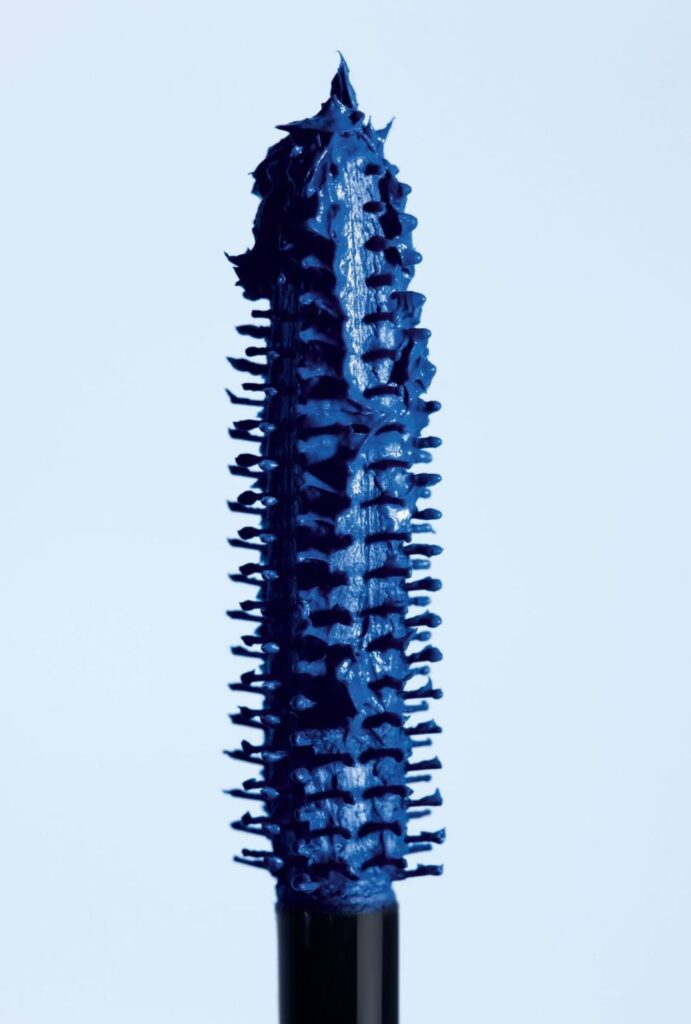 En la mirada, el delineador Stylo Yeux Waterproof en tonos azulados y la máscara Noir Allure en Índigo aportan profundidad sin rigidez. El azul deja de ser tendencia puntual (se convierte en acento sofisticado).