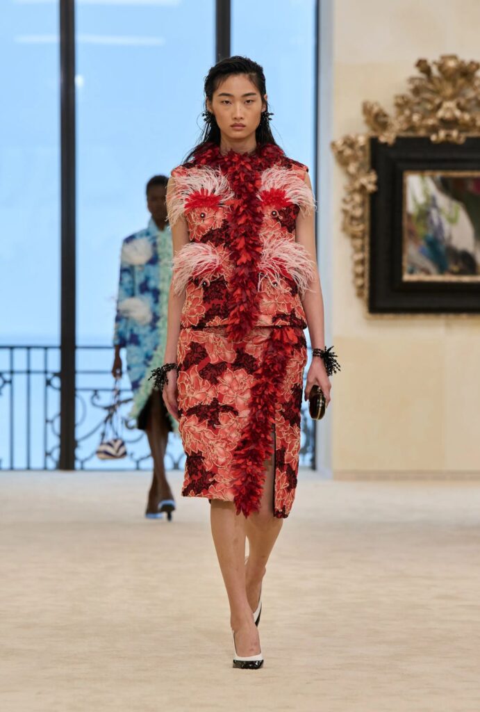 La colección reinterpreta los códigos más reconocibles de la Maison desde una mirada más libre, casi instintiva. El tweed se transforma en su versión más ligera y desestructurada, con un aire casi deportivo que rompe su rigidez clásica.