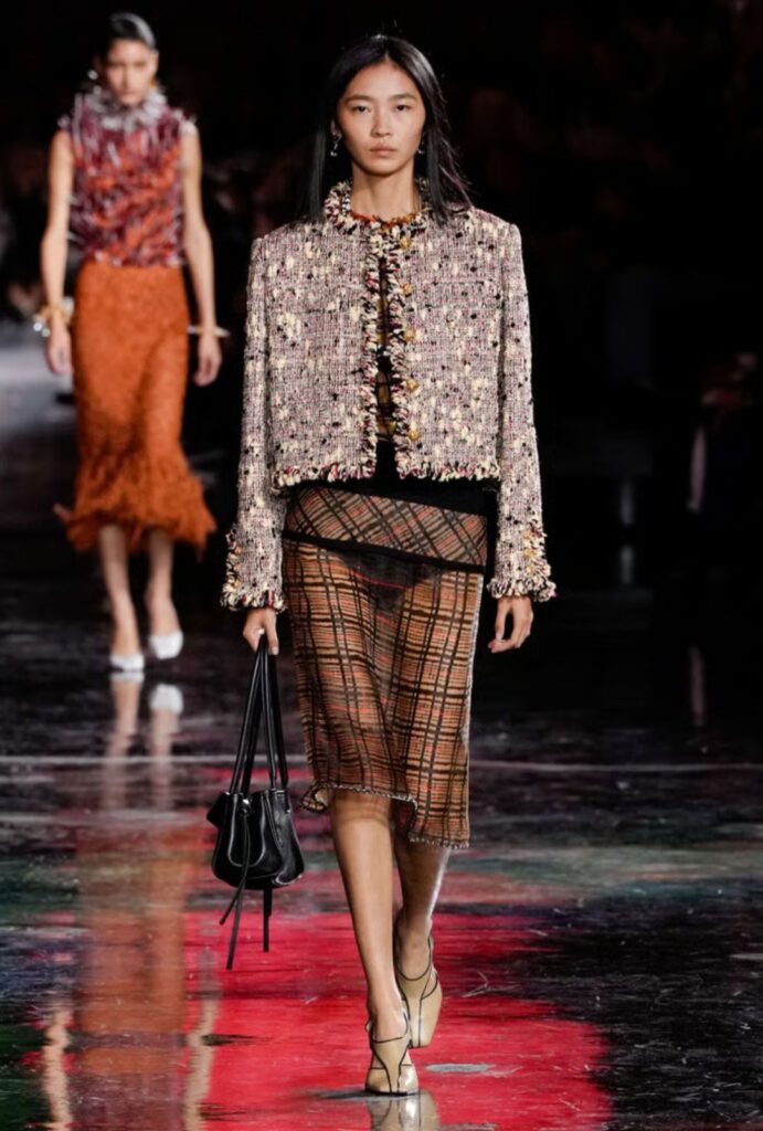 Cada tejido —del tweed aireado al satén líquido— parece pensado para atrapar la luz desde un ángulo distinto. Es una exploración sensorial, casi cinematográfica.