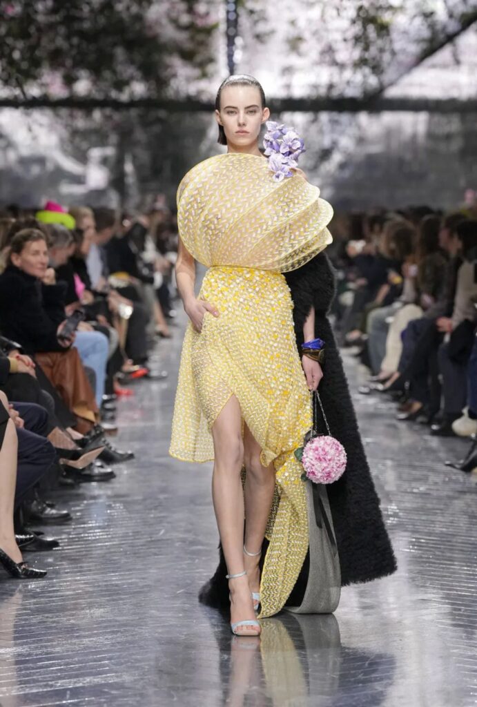 La colección rinde homenaje a Christian Dior y a su amor por los jardines: flores, ramilletes, broches inspirados en hortensias y orquídeas. Pero también dialoga con la modernidad: la naturaleza se interpreta desde un enfoque contemporáneo, donde lo orgánico convive con lo arquitectónico, lo vivo con lo manufacturado.