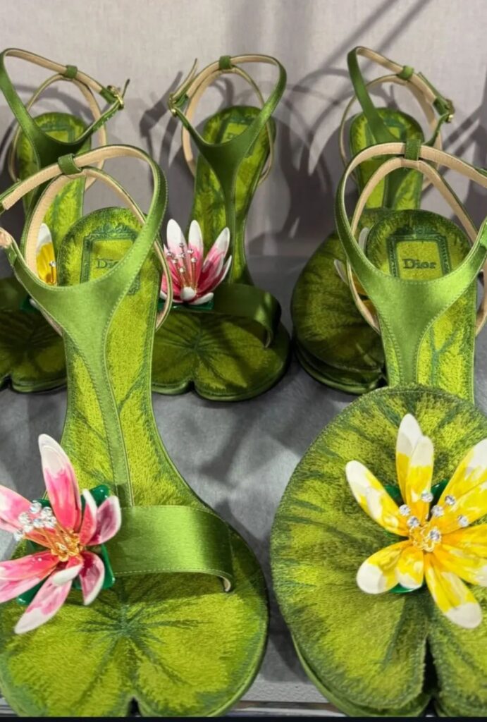 En Dior AW26, los accesorios no complementan: dirigen la narrativa. Las sandalias inspiradas en nenúfares emergen como el gesto más reconocible de la colección, mientras los tacones en T reinterpretan el vintage con una precisión contemporánea.