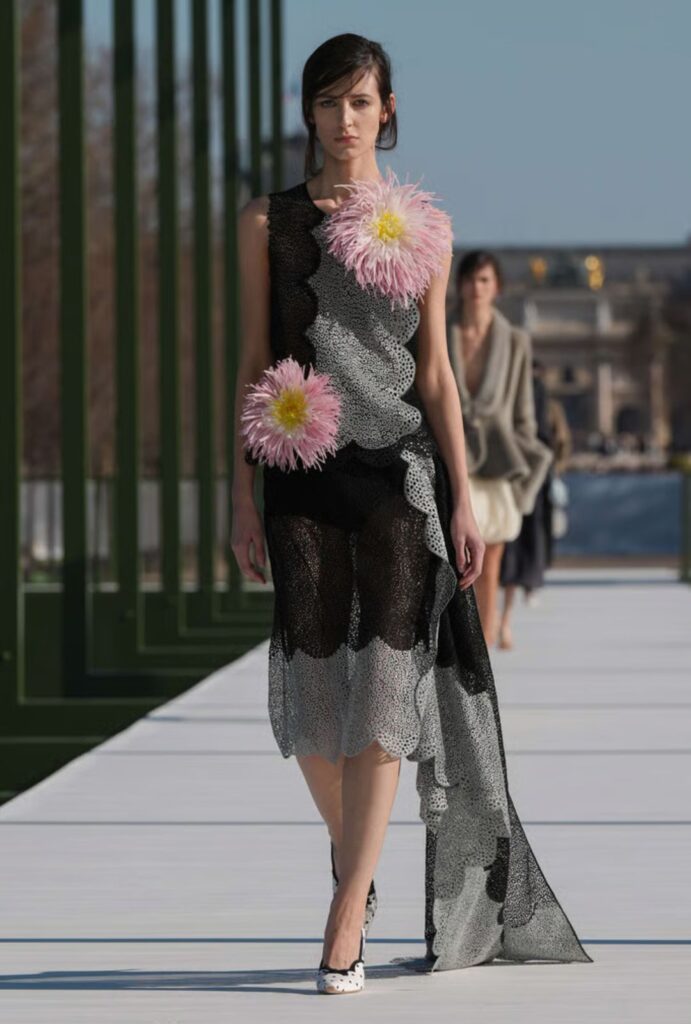 Botánica couture según Jonathan Anderson: una colección donde el jardín parisino se transforma en siluetas arquitectónicas, pétalos estructurados y flores que desafían el invierno.