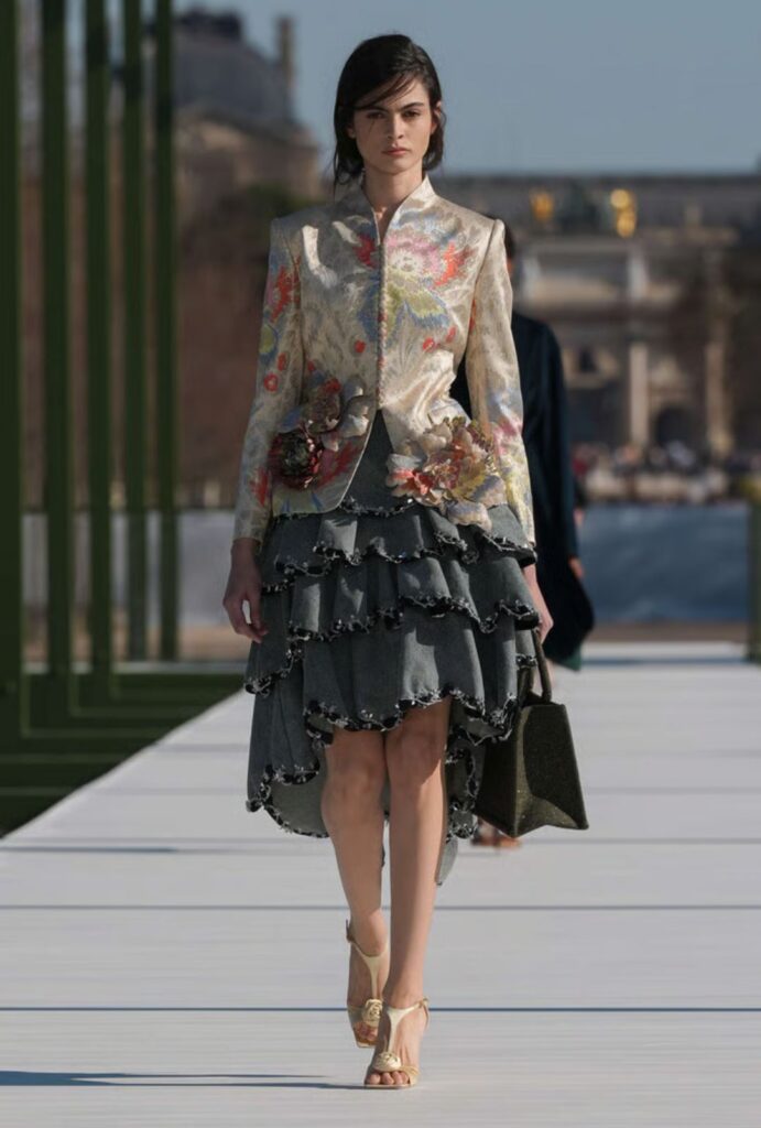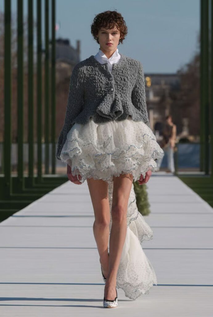 La maison transforma el espíritu del Jardín de las Tullerías en una narrativa de botánica couture: flores que no se marchitan, siluetas que flotan sobre estructuras firmes y un diálogo constante entre naturaleza y artificio. No es solo una colección; es una declaración de cómo el legado puede florecer sin perder audacia.