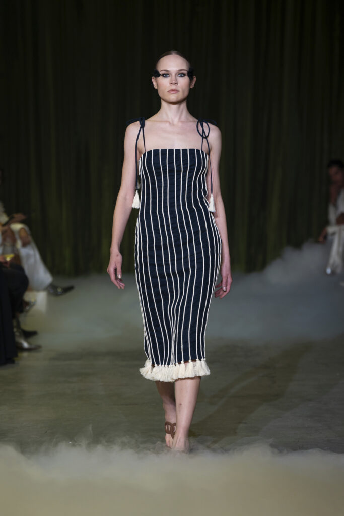 Andrés Otálora, por el otro lado, tuvo a sus modelos luciendo piezas de su colección Resort 2026, aquella de la que también resaltaron volúmenes, tocados, rayas y flecos. Su paso por el Mercado de las flores hizo honor a su objetivo: entretejer la tradición y la sensibilidad con innovación y devoción a los detalles. Andrés Otálorra hace moda que ‘fusiona sin esfuerzo la fuerza de América Latina con las formas del mundo, elevando la esencia de la feminidad a su máxima expresión’.