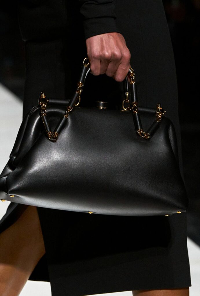 En bolsos, el nuevo modelo con espejo oculto interior evocó la seducción de épocas pasadas desde una perspectiva contemporánea. El icónico My Sicily regresó en materiales preciosos, mientras que propuestas como Dina y Carla exploraron la textura del crochet en piel.