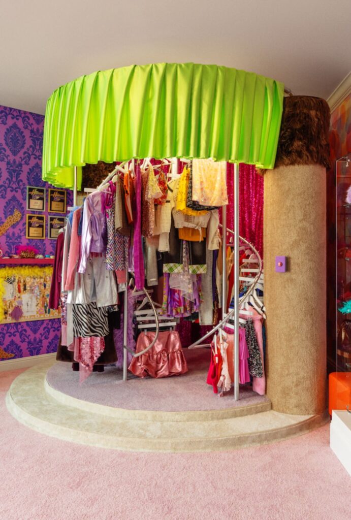 Si hay un elemento que lo cambia todo, es ese. El icónico armario deja de ser ficción para convertirse en una habitación real, cargada de vestuario escénico, brillos y accesorios.