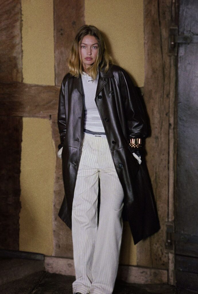 Hadid encarna esa dualidad tan Miu Miu: un lujo que no pretende, que fluye, que se siente honesto. Frente a la cámara, Gigi no interpreta un papel; habita un universo. Su presencia convierte cada imagen en un instante que parece robado a una película navideña contemporánea—suave, íntima y hermosa.