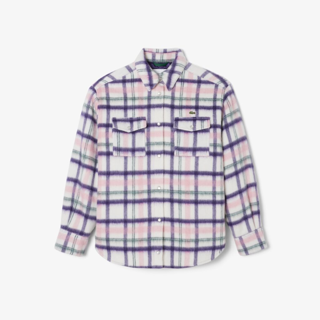 En invierno el estampado a cuadros es un acierto, para aquellos días de películas navideñas, esta sobrecamisa de lana acolchonada de gran tamaño es la mejor opción, más aún pensando en sus tonalidades blanco, violeta, rosa claro y verde.