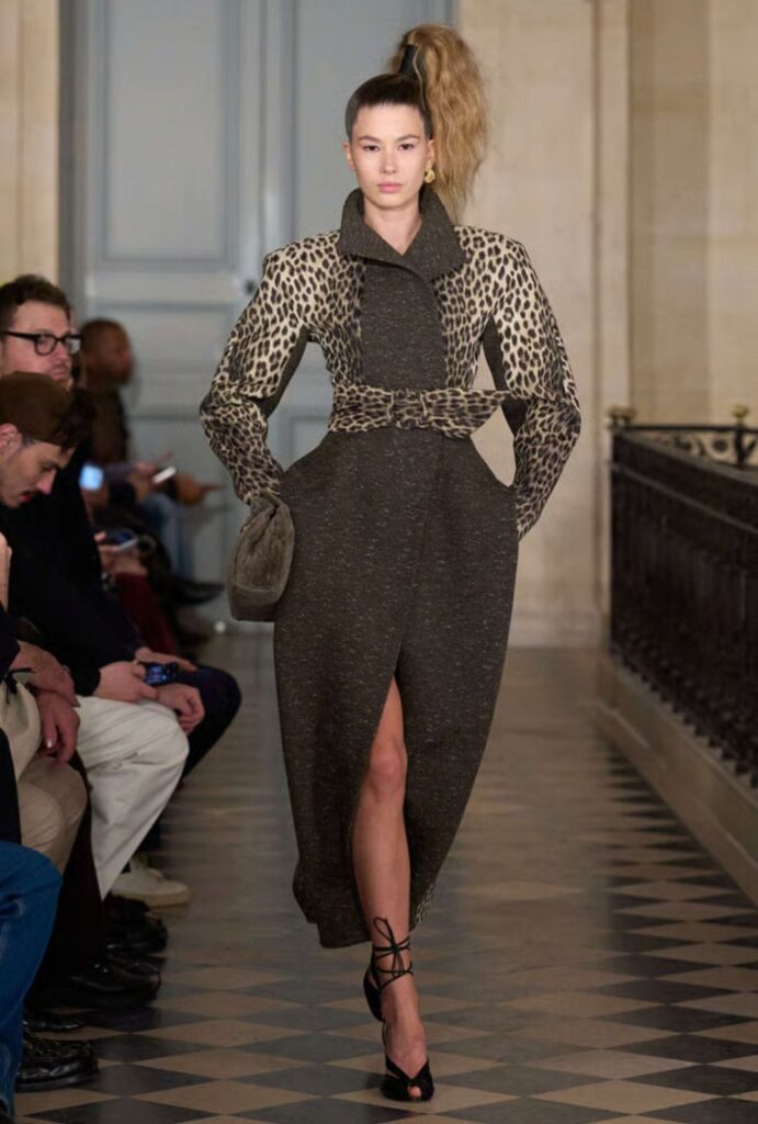 Los vestidos y faldas (olvidando casi por completo el pantalón) dominan la pasarela, como si cada look fuera un personaje cinematográfico vestido para un momento decisivo. Pero la tendencia más icónica no estuvo en la ropa: estuvo en el peinado Le Palmier, una coleta alta y ladeada que se convierte en símbolo de la colección y del espíritu de la temporada; salvaje, libre y con humor.