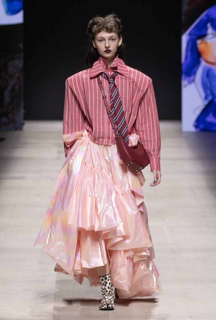 Más allá de los nombres destacados, el cuarto día funcionó como un mapa de nuevas sensibilidades. Desde las costuras expuestas y el encaje estratégico de Sol Selivanova Olga, hasta las siluetas definidas en negro y rojo de Darya Kipriyanova, la jornada evidenció una constante: la moda como lenguaje introspectivo.