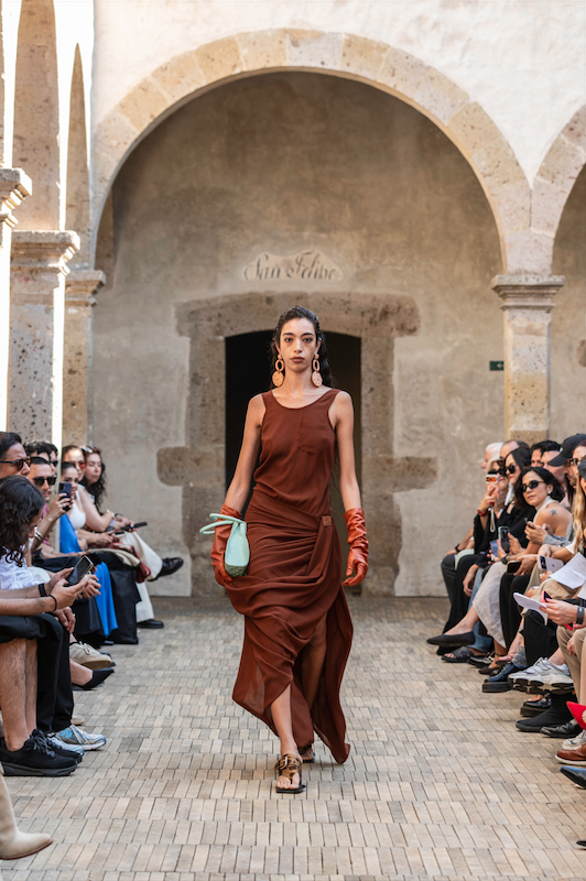 Sobre la pasarela observamos texturas orgánicas y un fuerte acento en lo artesanal, la propuesta conecta pasado y presente, celebrando las raíces y el trabajo colectivo. Más que perfección, ‘Barro’ busca autenticidad, posicionándose como un homenaje a quienes resisten y siguen creando.