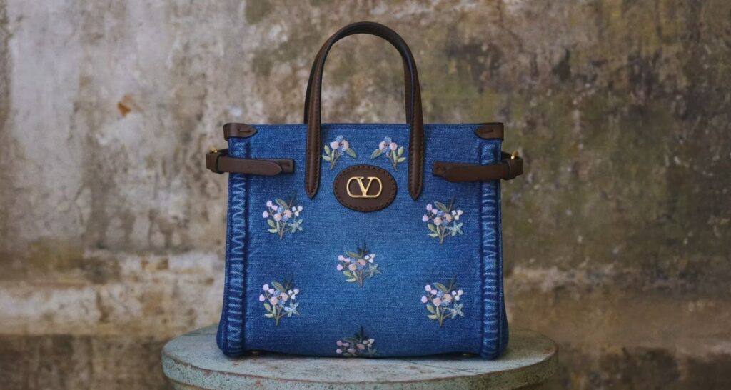 Valentino redefine el denim transformándolo en arte contemporáneo. Accesorios, bolsos y zapatos bordados combinan artesanía, elegancia y frescura primaveral, convirtiendo un clásico atemporal en una expresión sofisticada de estilo.
