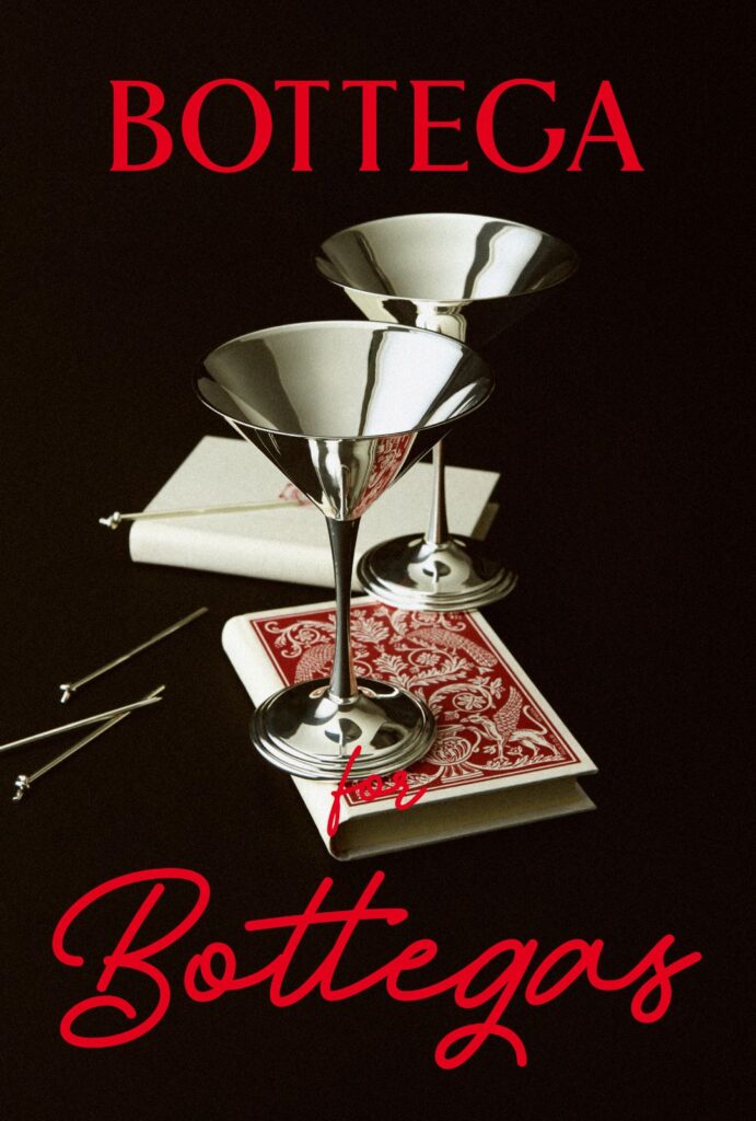 Bottega Veneta lanza Bottega for Bottegas 2025, homenajeando a los artesanos de Venecia, Nueva York y Milán. La colección incluye vasos de plata, palillos de cóctel y cuadernos encuadernados a mano, celebrando la excelencia artesanal y la cultura del aperitivo italiano.