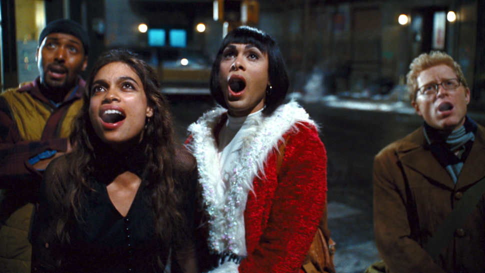 Adam Pascal como Roger Davis, Rosario Dawson como Mimi Marquez. Foto: Cortesía Sony Pictures.