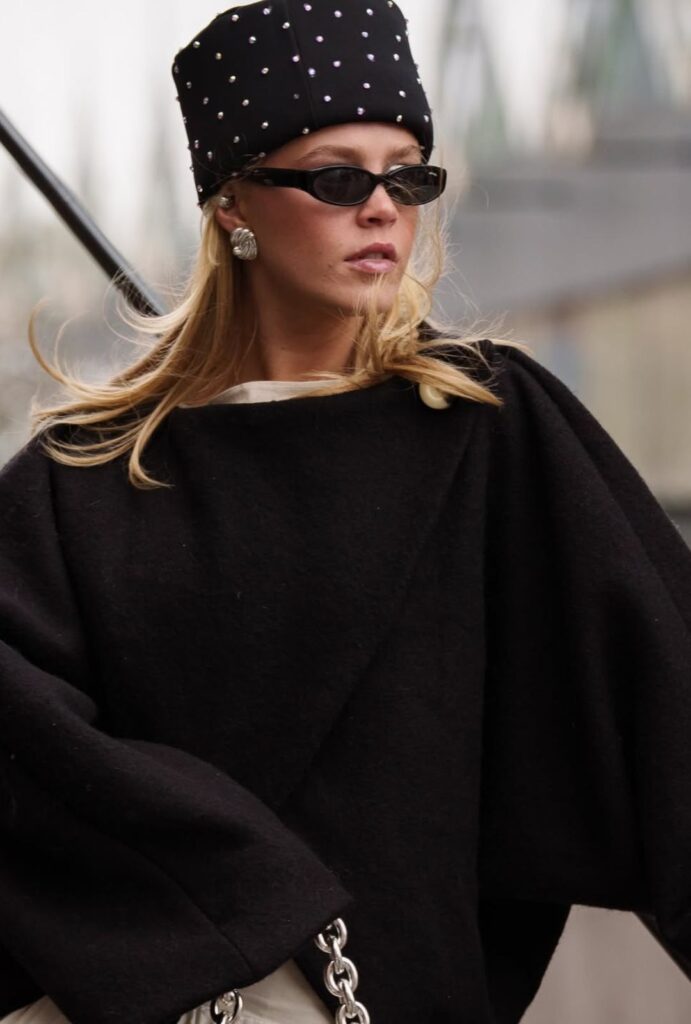 Pillbox hats que regresan con actitud moderna, bolsos intrecciato icónicos de Bottega Veneta y vintage con historia de Chanel. Pequeños detalles que elevan cualquier look: gafas de sol XXL, botas rojas o lentejuelas integradas al street style de día. Cada accesorio funciona como firma personal, una declaración de estilo que nadie pasa por alto.