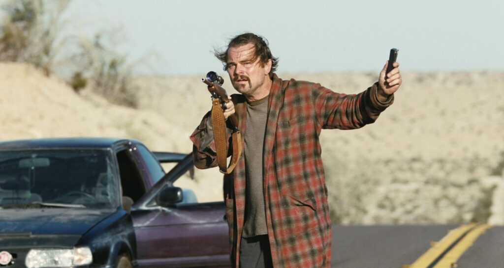 En el centro de la historia está un hombre marcado por decisiones incompletas y un pasado político intenso. DiCaprio interpreta a alguien que ha aprendido a vivir escondido, desconfiando de todos y de todo; cada gesto, cada mirada, cada silencio cuenta más que mil diálogos.