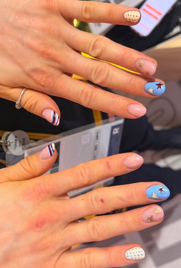 Desde la cruz blanca de Suiza hasta la hoja de arce de Canadá, pasando por el verde-blanco-rojo de Italia y el tricolor elegante de Francia, las uñas se transforman en pequeños lienzos patrióticos.