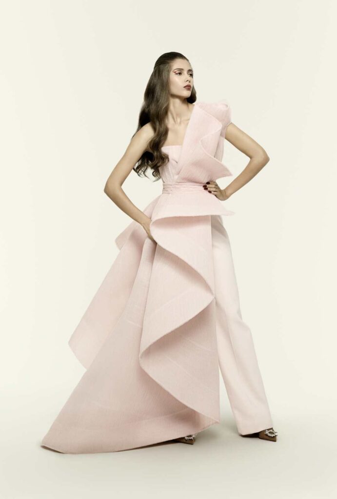 Es posible llevar la alta costura a nuestro día a día para lograr el equilibrio entre funcionalidad y teatralidad. Se recomienda optar por colores clásicos como blanco, negro o rosados claros. Reinventar el traje sastre , desde el saco hasta los pantalones, fusionados con volantes y movimiento, le da un aire renovado y sofisticado.