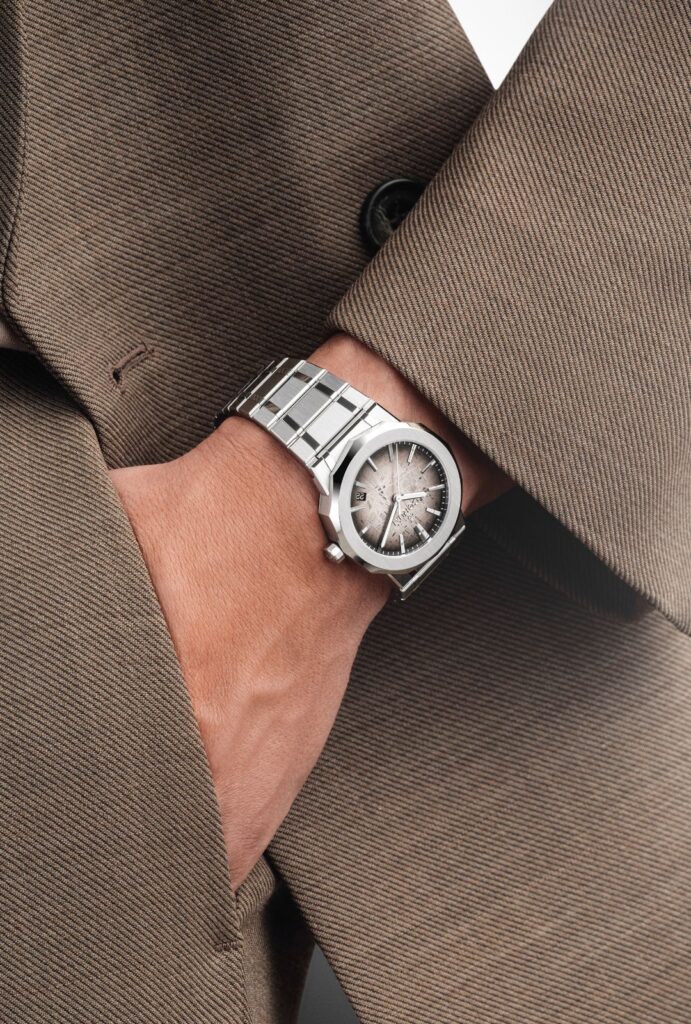 Esta creación reinterpreta uno de sus iconos desde una dimensión más escultórica y luminosa. Elaborado en oro blanco de 18 quilates y engastado con más de 500 diamantes (que suman 44 quilates), el reloj se presenta como una composición tridimensional que captura la luz desde todos los ángulos.