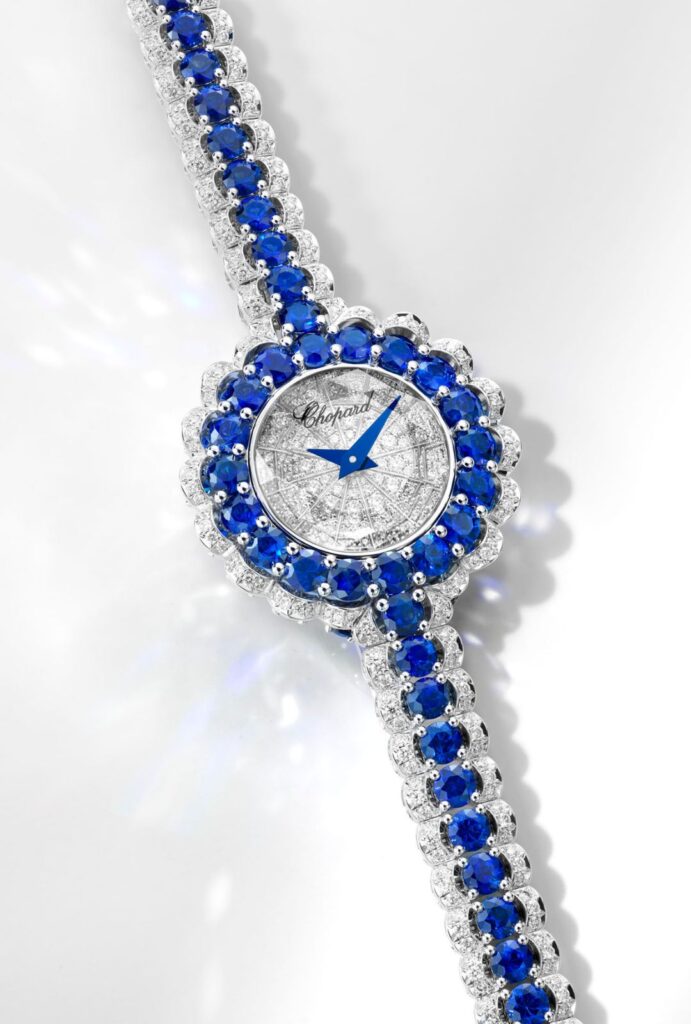 Precious Lace, una oda a la delicadeza de la Alta Costura llevada al universo joyero. La Maison revela tres piezas en oro blanco ético de 18 quilates, entre ellas un reloj-joya engastado con más de 1.000 piedras preciosas (zafiros y diamantes) que evocan la ligereza del encaje guipur.