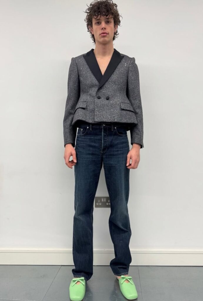 Porque el traje cumplía su función (impecable, pulido, silenciosamente radical), pero los zapatos rompían la narrativa. Eran suaves donde se espera rigidez, juguetones donde solemos ver sobriedad.