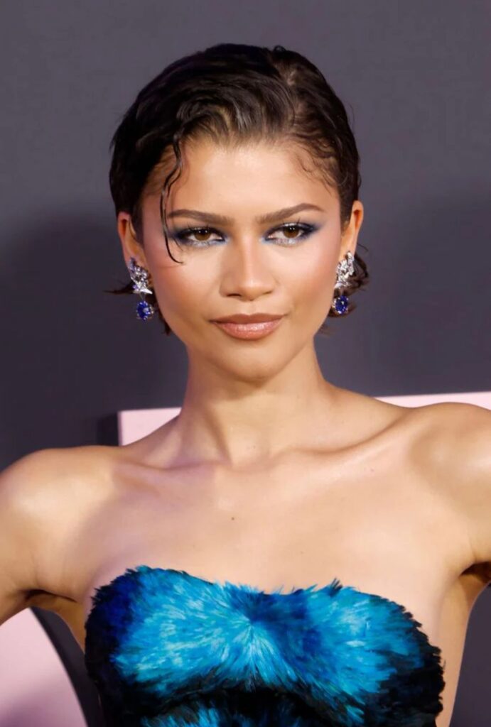 Zendaya completó su look con un beauty styling impecable que dejaba todo el protagonismo al vestido y las joyas. Optó por un peinado recogido elegante, que realzaba el escote palabra de honor y mostraba los pendientes de Tiffany & Co., mientras que su maquillaje en tonos neutros y suaves aportaba luminosidad sin competir con los intensos azules del vestido.